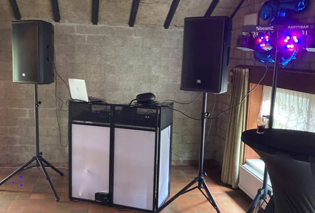 ✔️ Inclusief professionele DJ-apparatuur (booth, mengpaneel, speakers, verlichting, microfoon etc.) tot max. 150 personen